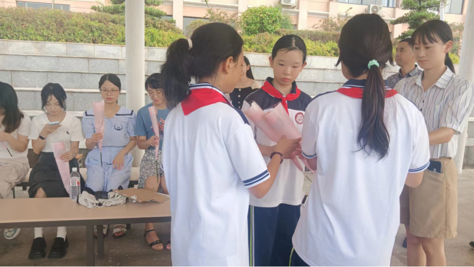给师生颁奖后,团委组织学生给教师礼献鲜花。一声“老师辛苦了,祝您教师节快乐!”响彻全场,开学典礼圆满结束。本次开学典礼暨庆祝教师节表彰大会,既是对过去一学年的总结和回顾,也是对新学期的展望和期许。它激励着全体师生在新的学期里奋发图强,勇攀高峰。相信在全体师生的共同努力下,益阳国基实验学校一定会在新的学年里创造更加辉煌的业绩!