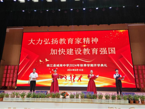 未觉三夏尽,时序已新秋。桃江县城南中学于9月10日上午在学校体艺馆隆重举行以“大力弘扬教育家精神,加快建设教育强国”为主题的2024年秋季学期开学典礼暨第四届“优乐美”教师颁奖典礼活动。学校1700余名师生共赴这场盛宴。