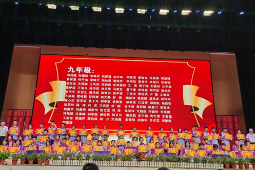 学校表彰了200多个德智体美劳全面发展的“优乐美”少年,有8个班级获得“优乐美”五星班级奖励。莫晨熙、吴霜、刘刚三位学生代表发言号召全体同学新学期要以崭新的面貌昂扬斗志、奋勇直追,向“优乐美”少年看齐,成为他们,超越他们。