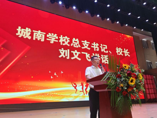 该校党总支书记、校长刘文飞作总结发言,刘校长向新加入城南学校的师生们表示热烈欢迎,向所有获奖师生表示热烈祝贺,向全体教师表达节日的祝福。他回顾了过去一年学校在教育教学等方面取得的光辉成绩,在新的学期里,对孩子们提出了四点要求:一、明确目标,坚定信念;二、勤奋学习,立德修身;三、团结协作,共同进步;四、安全为重,健康成长。刘校长鼓励教师们在新的学年里不畏困难,认真教学,关爱学生,助其成才;鼓励学生们努力学习、积极进取,培养良好的品德和习惯,勇于挑战自我,不断超越自我。
