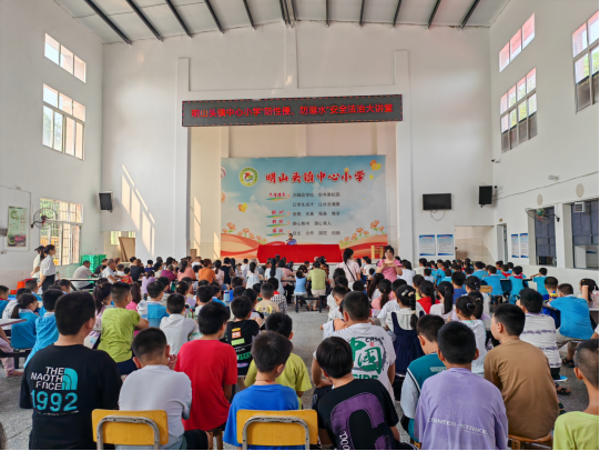 为持续推进未成年人预防性侵、预防欺凌、预防溺水等安全教育,增强未成年人安全意识和防范能力,全力构筑未成年人生命安全、健康成长安全防线,9月9日上午,明山头镇中心小学法治副校长南洲镇派出所副所长彭四万在新学期准时“上岗”。给全校800余名师生家长上了一堂精彩生动的法治安全教育课。