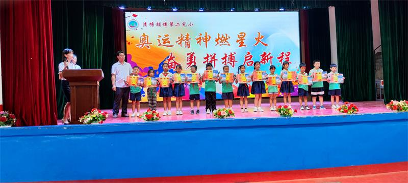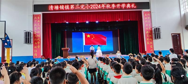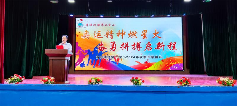 本网讯 9月12日,清塘铺镇第二完小全体师生齐聚该校风雨球场,举行了以“奥运精神燃星火 奋勇拼搏启新程”为主题的新学期开学典礼。