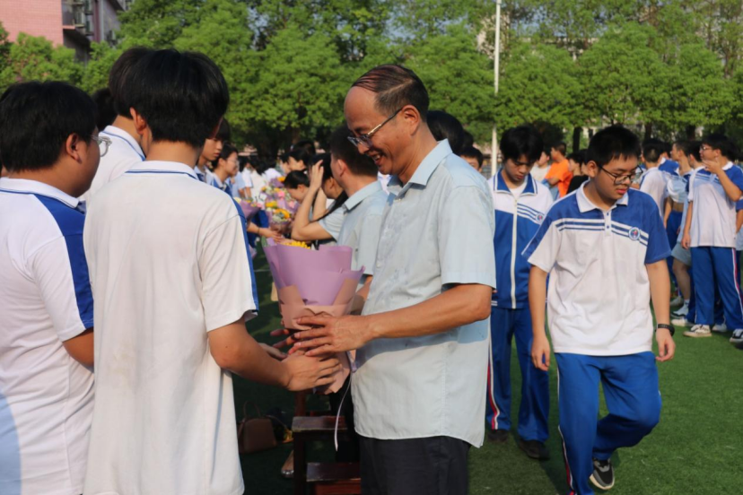 大会第三项是献花仪式。桃江七中的学子在这个特殊的日子,为默默耕耘的教师以及工勤人员献上了鲜花。