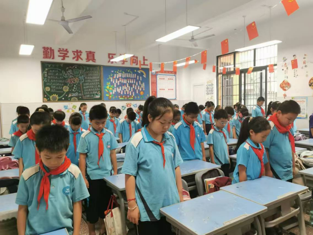 活动现场,全体师生庄严肃立,集体默哀三分钟,学生代表周伟杰同学作了《勿忘国耻,振兴中华》的激情演讲。最后,全体同学和少先队总辅导员一起庄严宣誓:“牢记历史,勿忘国耻,努力学习,兴我中华!”