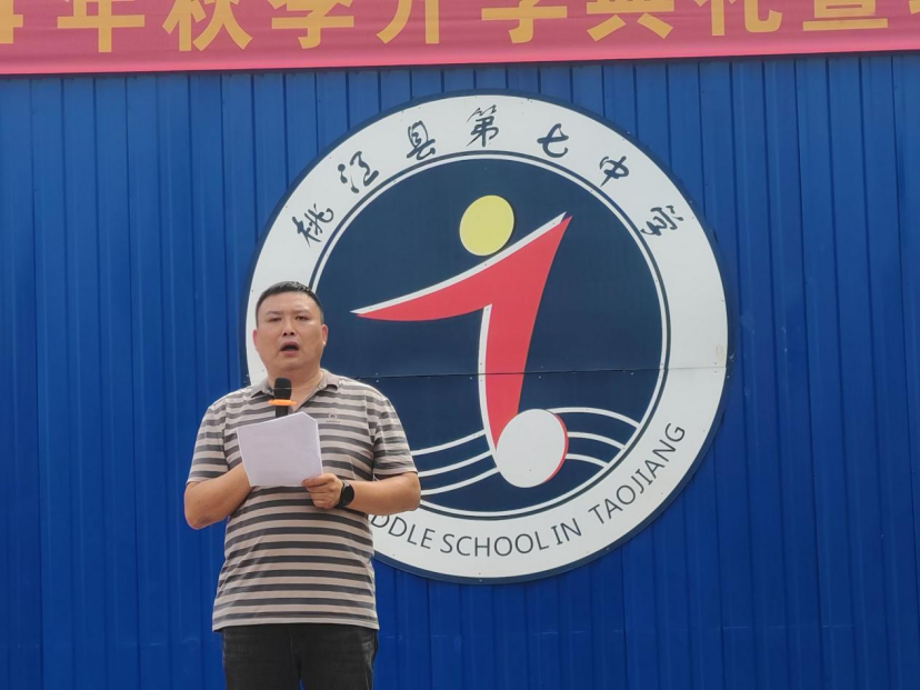活动中,桃江七中党总支书记、校长龚伟明沉重致辞。他用动情的话语带着师生们重回烽火连天的1931年,用一组组鲜活的数据告诉同学们,要记住那段悲惨的历史。作为习近平新时代的中华儿女,要以史为鉴,弘扬爱国主义精神,为国家的繁荣富强贡献自己的力量。