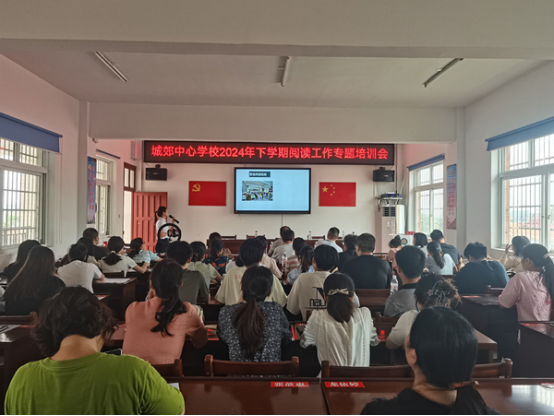 南县城郊中心学校一直坚持阅读工作“先培训,后上岗”的原则,每学年度开学初即组织开展青年教师的阅读专题培训会,帮助教师掌握阅读教学技能和教育理念,实现师生人人会阅读、爱阅读,让书的芬芳飘满校园的每一个角落。
