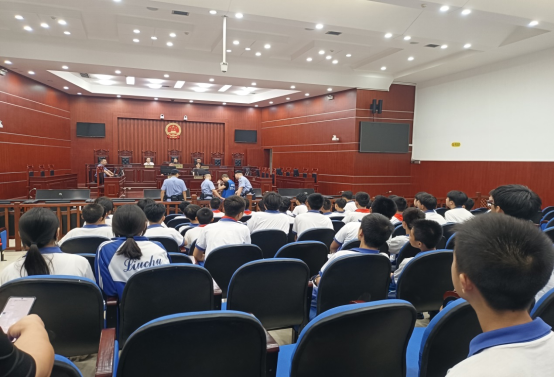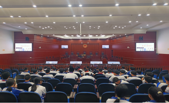 在庄严的庭审现场,法官、检察官、人民陪审员庄严就座,被告人被法警带上被告席。同学们旁听了一起真实的毒品犯罪案件庭审,沉浸式体验被告人的犯罪心理过程和法律审判的庄严,感受到法律对毒品犯罪的严厉打击,具有极强的教育和警示意义。
