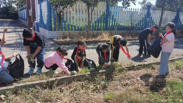沅江市漉湖学校拔草除杂实践活动