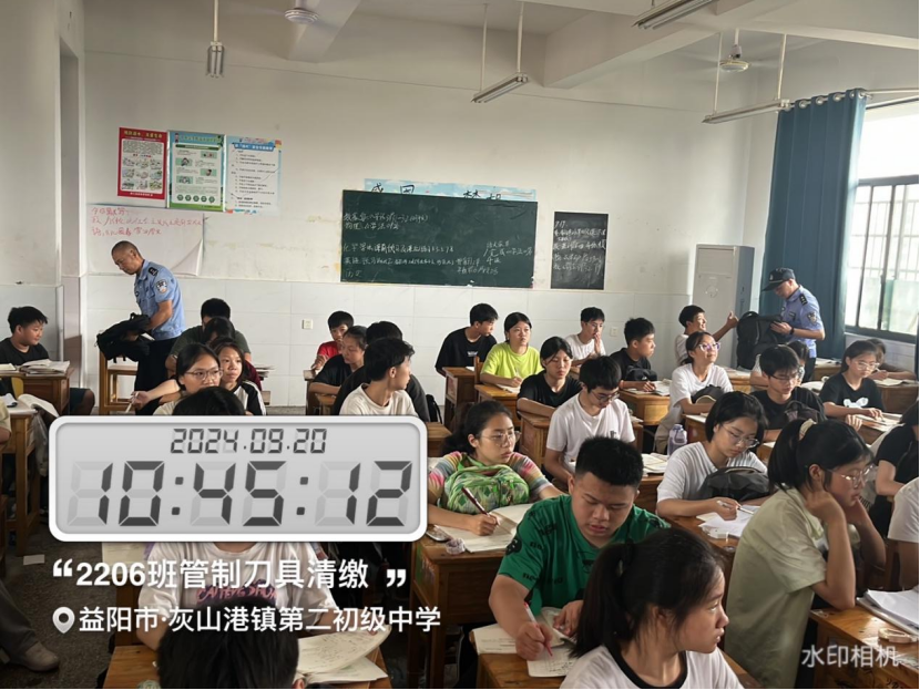 本网讯(通讯员 苏乐良 赵舜)“请同学们将各自的书包放到课桌上,将携带的管制刀具交上来。”这是 9月20日下午灰山港派出所干警在镇二中清缴学生管制刀具时发生的一幕,灰山港镇中心校要求各单位由政教处牵头协同干警深入各班教室开展校园管制刀具排查清缴活动。