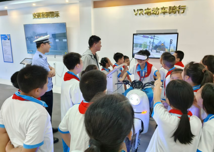 随后同学们还进行了红绿灯规则体验、VR电动车骑行、交通知识抢答,观看了由桃江交警根据实际案例自创拍摄的交通案例微电影。