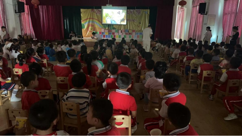 观看红色电影则将本次系列活动推向了高潮。全园幼儿齐聚在三楼大礼堂,一边观看动画版抗战片《闪闪的红星》,一边吃着喷香的爆米花。通过感人的电影情节,幼儿懂得了今日的幸福生活来之不易。