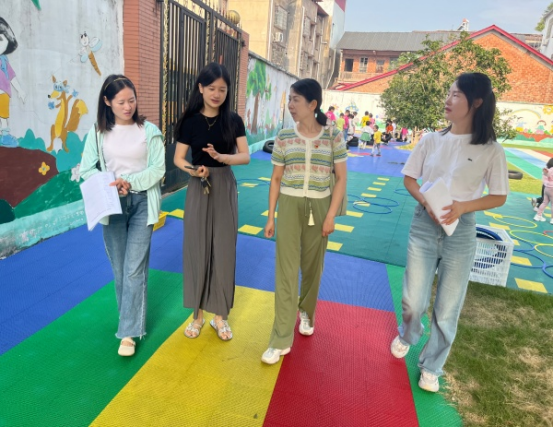 在园长石雅萱的陪同下,肖清一行对厂窖镇中心幼儿园的幼儿活动室、区域环境创设、种植园、户外活动场地等进行了实地查看,详细了解了幼儿园目前的发展现状,为后续的帮扶行动打好了基础。