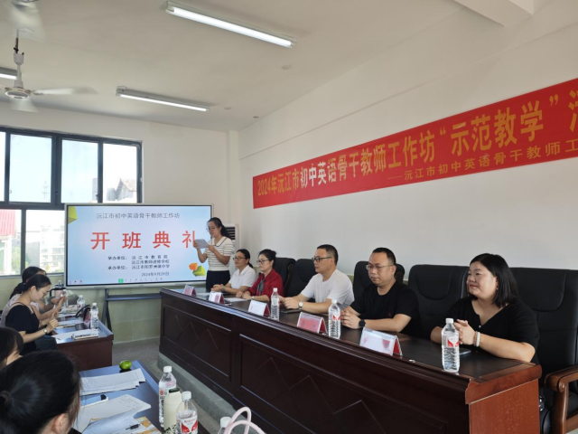 首先,工作坊召开了简短的开班典礼。沅江市教育局教师工作股李进副股长号召所有学员要根据学情、教材以及中高考的相关要求,在教学中选择正确的教学模式。进修学校李少云副校长认为,工作坊是最好的英语教学平台,学生最好的学习方式就是学生互相帮助、互相成长。培训的成功、个人的成长都是双向奔赴,需要老师们认真规划。教研室英语教研员杨柳老师用“感谢、典范、希望、承诺”表达了她对工作坊的期待与规划。班主任张玲老师对本次研修提出了相关纪律要求。基地校王新颖校长表示,一定做好工作坊研修活动的后勤保障工作,并祝愿所有的学员们学有所获、学有所乐。
