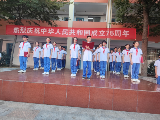 本网讯(通讯员 曹国军 臧万军 何玲)近日,益阳市第六中学初中部两千多名师生齐聚操场,举行了“贺祖国华诞,展少年雄心”庆祝中华人民共和国成立75周年升旗仪式。
