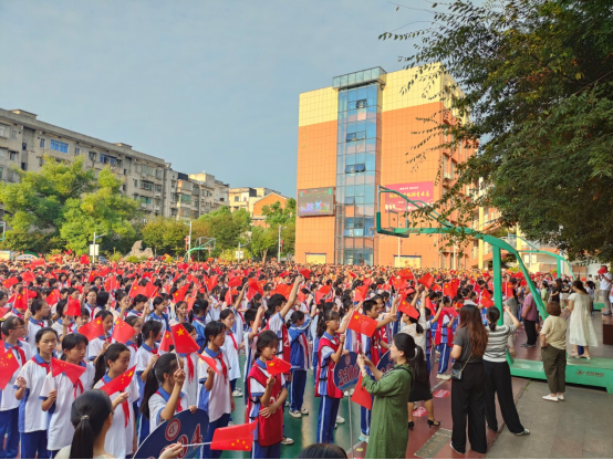 庄严的升国旗仪式上,全体肃立奏唱国歌,少先队员行队礼,该校2402班安泓铭同学发表国旗下讲话《贺祖国华诞,展少年雄心》, 2303班同学集体朗诵《我骄傲,我是中国人》,学校校长、党支部书记崔卫丰领唱,师生合唱《我和我的祖国》,高潮迭起的乐曲,激情澎湃的歌声,鼓舞人心,振奋精神,点燃了所有人的爱国热情。