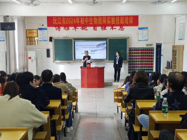 上午的培训会上,市局教研室唐水波教研员为高中教师作《生物探索之旅》讲座,以生动风趣的语言带领老师们探索有趣的生物世界;刘红霞教研员为初中教师深入解读了《湖南省初中实验操作规范指南(2023 版)》,并就初中生物实验教学提出自己的建议,助力教师精准施教。
