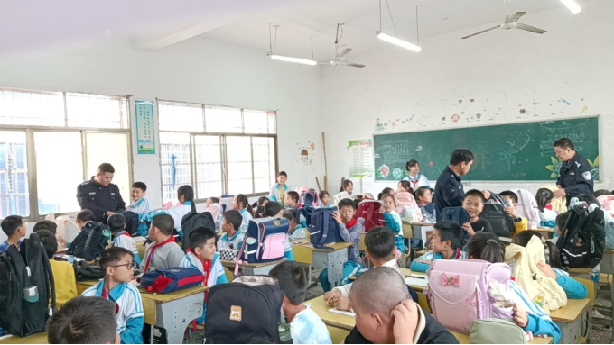 为了严厉打击任何涉校涉刀违法犯罪活动,加强校园安全管理,营造安全、稳定、文明和谐的学习生活环境,2024年10月15日上午,桃江县桃花江镇凤凰山派出所的干警们,来到桃花路小学,在老师的协助下,先后进入各班级,现场对学生的书包、抽屉进行管制刀具突击搜查。