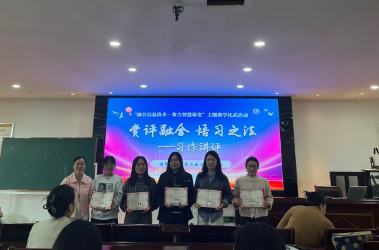 经过激烈的角逐,最终徐雪等5位教师获得一等奖,张蓉蓉等7位教师获得二等奖。活动最后,语文组组长邓嫔老师对此次活动进行了简短总结,课题组组长彭艳红老师提出了课题的下一步设想。本次习作讲评课教学比武活动为教师提供了一个相互交流和学习的平台,切实有效地促进了教师的专业成长。我们语文组也将继续以课题为中心,开展更多研讨活动,真正帮助学生提高习作赏析水平。