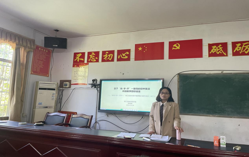 (本网讯 周玉川) 近日,“国培计划(2024)”桃江县农村初中英语骨干教师能力提升培训班(A0715)第八次活动在桃江县马迹塘镇中心学校顺利举行。培训班首席专家县教研室徐佳青老师、辅导员赵静老师及县发展中心管理团队带领来自全县各中学的50 多名农村初中英语骨干教师参加本次活动。
