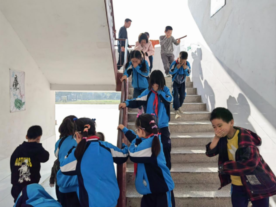 随着警报声响起,消防演练正式开始。各班学生在老师的引导下,放低身体姿态、捂住口鼻,迅速而有序地从教室撤离,并沿着指定的安全通道向操场集合。整个疏散过程,师生们均保持了良好的秩序,没有出现推搡、拥挤、踩踏等现象。