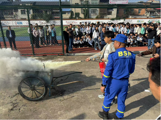 接下来,蓝天救援队的消防员进行灭火器使用注意事项讲解,现场指导师生如何正确使用灭火器。教职员工和学生上台体验并掌握了扑灭初期火灾的正确方法,提高了处置突发火情的能力,了解了“处处防火、事事防火、时时防火”的重要性。