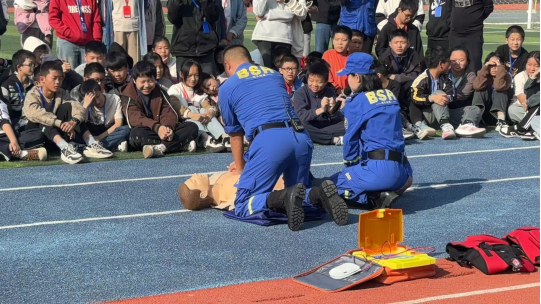 “生活中,很多悲剧的发生,就是因为缺乏急救常识而耽误了自救时间。”应急救护培训中,消防员详细讲解了学习急救知识的重要性。之后通过模型操作,现场演练心肺复苏、海姆立克急救法等初级应急救护的核心知识与处置要领等。现场互动中,同学们纷纷上台体验,虚心请教,实操紧急救护技能。大家纷纷表示,紧急救护并非想象的容易和简单,关键要头脑冷静,不慌乱,细致操作。