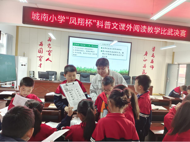 为了激发学生对科学的兴趣,提升学生科学素养,让教师更好地带领学生在阅读中感受科学的魅力。城南小学开展了以“科普启智 阅读领航”为主题的科普文阅读教学活动,从初赛到决赛,为期两个星期。经过层层选拔,刘佳惠等11位老师脱颖而出,角逐决赛。教学比武现场,师生们一同领略到科学的魅力,感受阅读之力量。老师们围绕《昆虫记》这一本书,精心设计了一系列与昆虫相关的活动,将学生带入到了一个充满神奇与趣味的昆虫世界里,帮助孩子们更好地理解和欣赏《昆虫记》这部作品,同时培养他们的观察力、动手能力和对自然的热爱之情,从而激发了他们对《昆虫记》整本书的浓厚兴趣;老师们围绕《十万个为什么》涵盖物理、化学、生物、天文、地理等多个领域的基础科学入手展开教学设计,引导学生科学观察、实验、推理等方法,帮助学生更好地理解和掌握科学知识,培养他们的科学思维和解决问题的能力,同时激发他们对科学的兴趣,充满好奇心和探索欲。