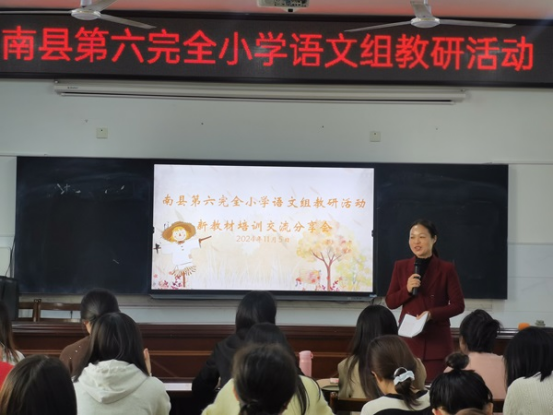 为充分发挥教师外出学习的辐射作用,达成“一人学习、众人受益、共同提升”的培训成效,11月5日下午,南县第六完全小学语文教研组开展了“采撷归来 共享芬芳”为主题的教研活动。学校语文教研组长甘小超主持活动。