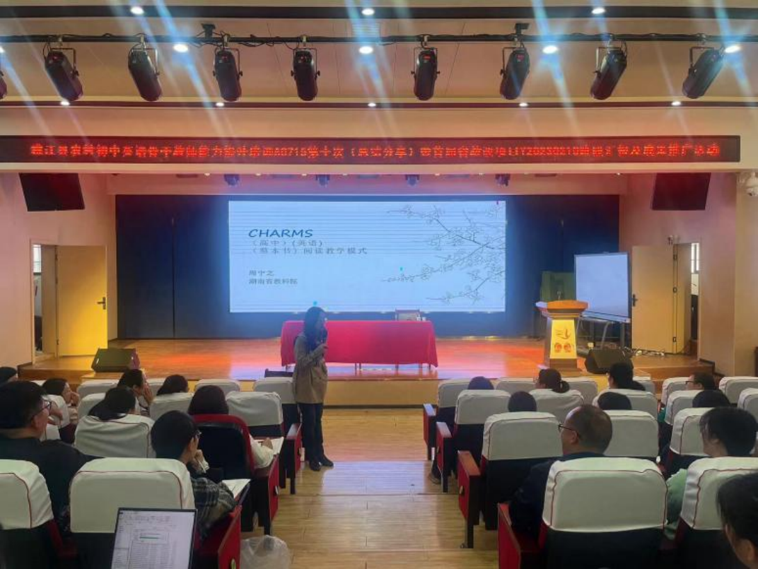周宁之博士开展了以《CHARMS阅读教学模式及其评价体系构建》的讲座。她从初中英语新课标入手,分别从CHARM阅读教学模式的基本原理、实施原则和教学模式框架几个方面为老师们解读CHARMS阅读教学模式的基本构建,并用初中英语新教材做案例分析,带领老师们构建CHARMS教学模式的六步骤课程框架。