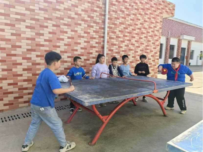 乒乓球台前,又是另一番温馨场景。钟老师耐心地教着随班就读的孩子打乒乓球,从最基本的握拍开始,一步一步指导。孩子们努力地学着,挥动球拍的动作虽略显生疏,但充满热情。小小的乒乓球在球桌上来回,映照着孩子的笑脸和钟老师欣慰的目光。