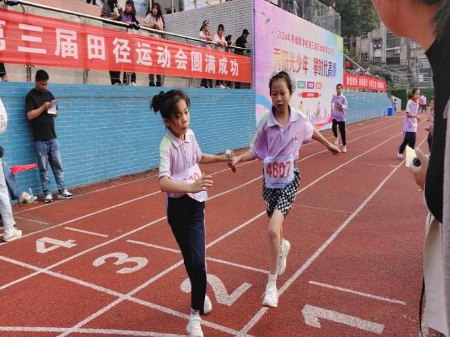 伴随着激昂的运动员进行曲,该校国旗护卫队、校旗护卫队、彩旗队、运动员方队、教师方队有序入场。一位特殊的学生出现在队列最前面,他是四年级二班的周同学,一名DMD(原发性骨胳肌坏死性疾病)患儿,一开始害怕被嘲笑,最后在师生鼓励下坐着轮椅参加了开幕式,他的勇敢坚毅赢得了在场所有师生的热烈掌声。开幕式后,竞赛环节开启。在100米竞赛中,随着裁判员一声枪响,运动员奋力冲刺;在投掷项目中,运动员挑战自我,力争上游;在团队项目中,运动员团结协作,配合默契,为班级奋勇拼搏。