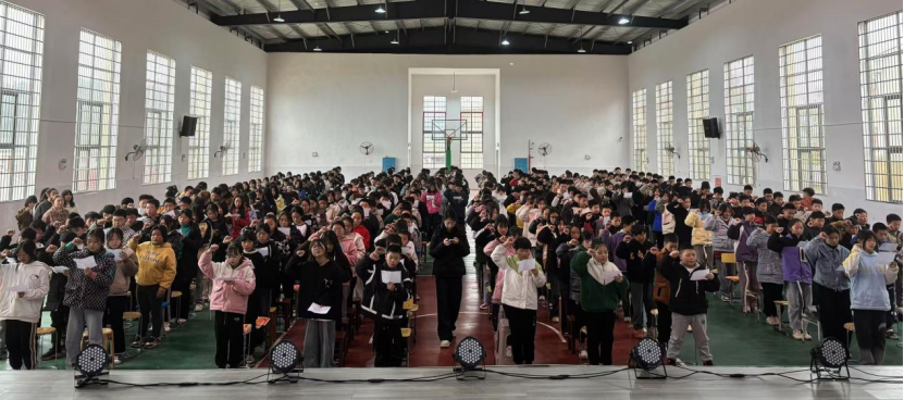 最后,全体学生高举右手共同宣誓,澎湃激昂的誓言不仅展现了少年意气风发的蓬勃朝气和勇往直前的坚定信念,还进一步增强了学生之间的凝聚力和向心力。在全体师生的共同努力下,三官桥中学一定能够迎来更加美好的明天。