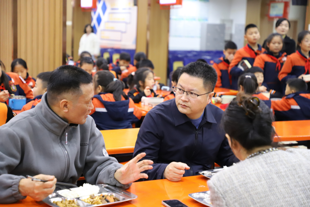 时值中饭时间,大家一同陪餐,与就餐学生进行亲切交谈,详细询问饭菜是否可口,深入了解同学们的思想动态和生活需求,李市长告诫大家一定要健康饮食,保持身体健康!