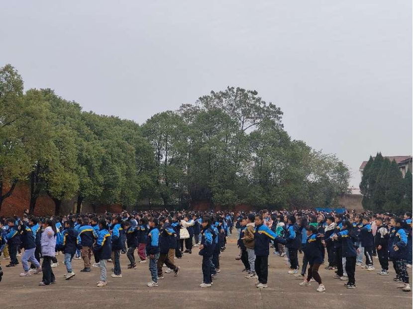 本网讯(通讯员 苏乐良)11月26日第二节课下课时间,桃江县灰山港镇完全小学校园广播室播放了节奏明快的运动员进行曲,同学们迈着轻快的步子有序进入了后操场。冬日暖阳将万道霞光洒向了操场,映照在大家的洋溢着自信愉悦的脸上。成为了一道美丽的风景。同学们迅速站好了队伍,在体育老师的引导下伴着节奏认真做全国中小学生功夫青春武术健身操。