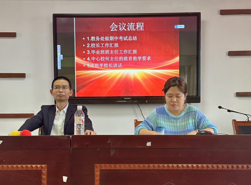这是近日,在茈湖口镇中心学校校长皮世平和基教主任何大辉引领下,该校召开期中考试总结与教育教学提升动员大会的片断。