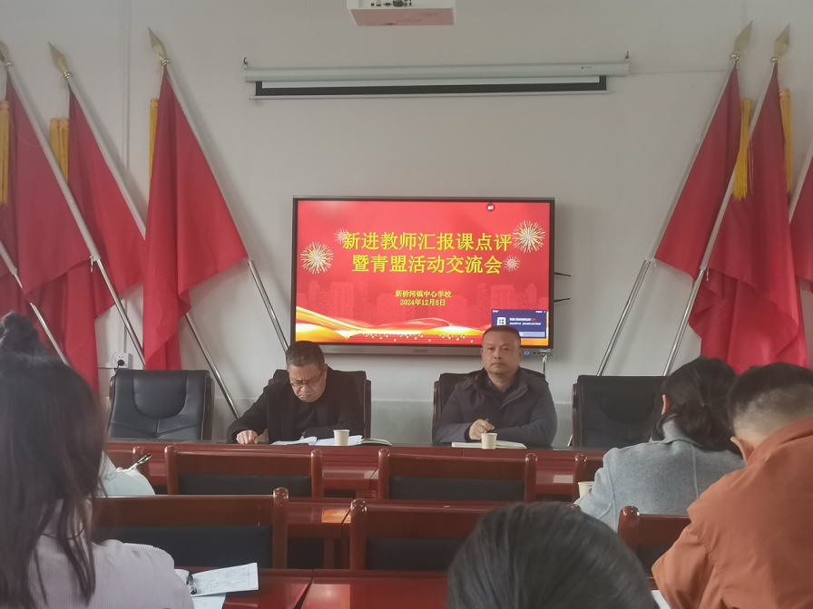 本网讯(通讯员 符琼 曹志勇)12月5日下午,资阳区新桥河镇中心学校四楼大会议室气氛热烈,新进教师汇报课总结暨青盟活动交流会在此召开。新桥河镇中心学校校长廖文、基教主任曹志勇出席会议,全镇各小学教导主任及新进教师参与其中。