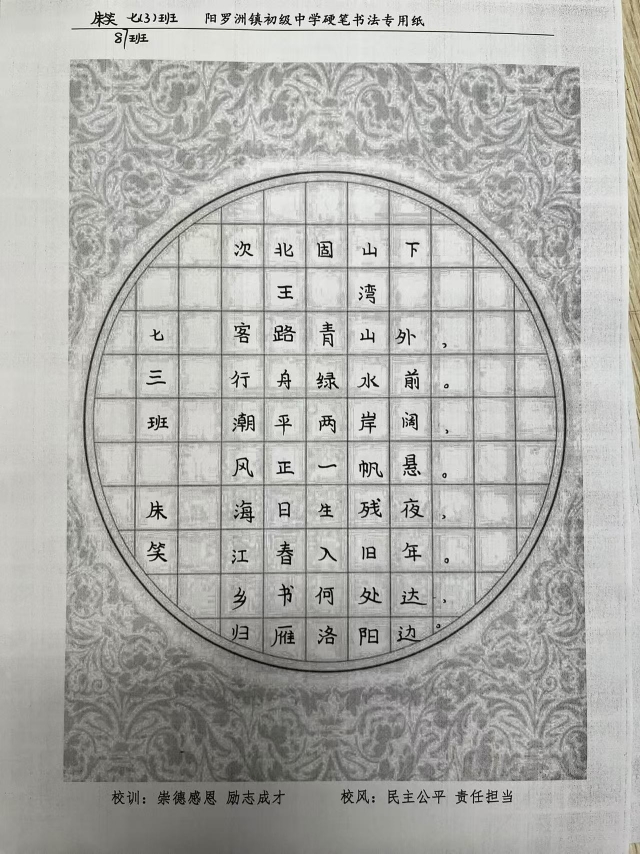 沅江市阳罗洲镇初级中学举行第四届“妙笔筑梦,翰墨飘香”学生硬笔书法比赛决赛