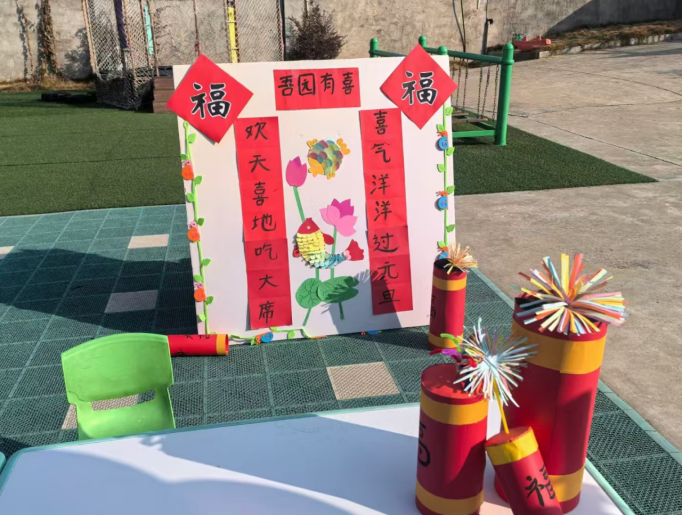 手工制作区,孩子们在老师的指导下,制作了新年贺卡、爆竹等手工艺品。这些作品不仅展现了孩子们的创造力,也让他们感受到了节日的氛围。