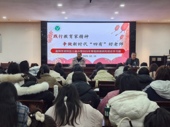 本网讯(通讯员 李琼)为进一步加强师德师风建设,提高教师思想政治素质和职业道德水平,2月10日,益阳市资阳区三益小学召开“践行教育家精神 争做新时代‘四有’好老师”寒假师德师风教育活动。