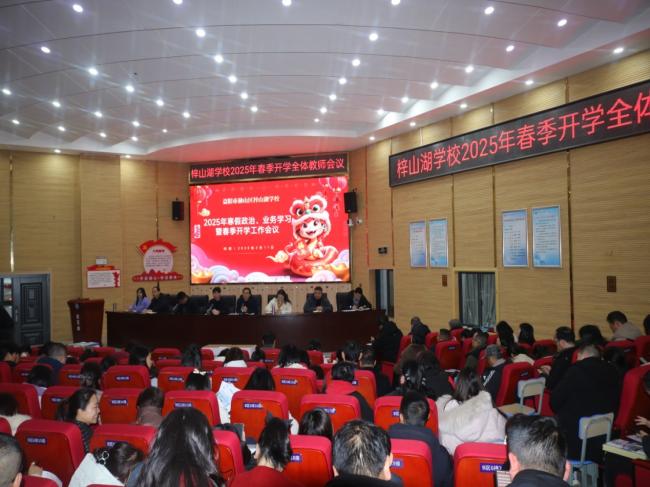 为推动新学期各项工作有序开展,2月11日,湖南城市学院附属梓山湖学校召开2025年寒假政治、业务学习暨春季开学工作全体教师大会。