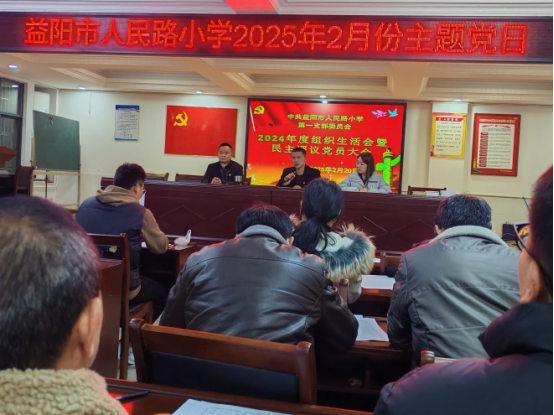 本网讯(通讯员 尹智慧)为深入学习贯彻习近平新时代中国特色社会主义思想,加强党员队伍建设,提升党组织的凝聚力与战斗力,2月19日晚上,益阳市人民路小学在本校会议厅召开了一场严肃且热烈的民主生活会。学校全体党员齐聚一堂,共同回顾过去、反思当下、展望未来,为学校教育事业的发展注入新的活力,提质赋能,会议由办公室主任代兼第一支部书记申平主持。