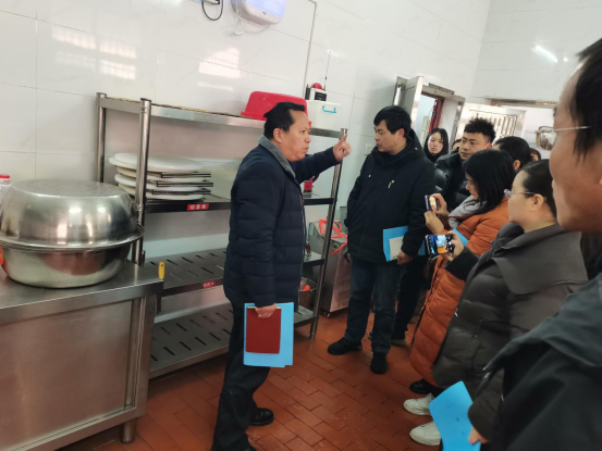 在实地参观环节,新颜小学总务主任刘新引领与会人员深入食堂,细致展示了设施设备的配备情况,并详细解读了食材处理流程及监控体系。刘新特别指出,食材来源的可追溯性与高品质是食堂管理的基石,日常操作中必须严格遵循食品安全规范。