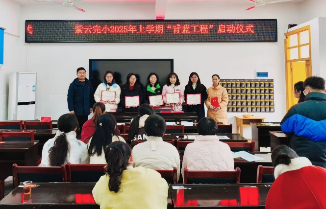 本网讯 3月10日,梅城镇紫云完小2025年上学期“青蓝工程”师徒结对仪式在会议室举行。