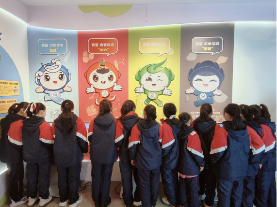 参观结束后,同学们迅速转换角色,化身为充满活力的“文明使者”,积极投身于少年宫的垃圾分类知识普及活动之中。活动现场,同学们全神贯注地聆听志愿者深入浅出的讲解,认真观看生动形象的科普视频,一步步深入学习垃圾分类的方法与技巧。在深入学习后,同学们还主动向周围的人宣传环保知识,倡导绿色生活理念。