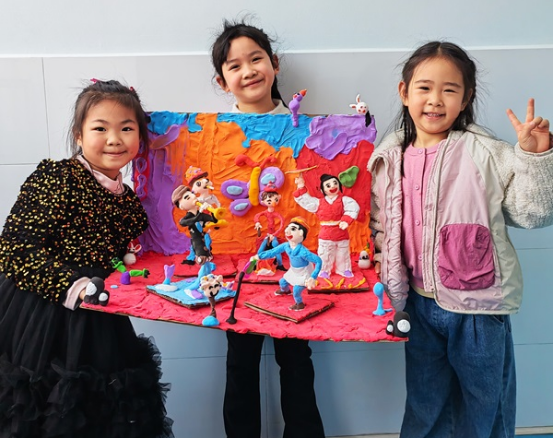 活动伊始,教师通过动画《地花鼓的故事》向孩子们生动讲解戏曲服饰与角色特色。孩子们化身“小工匠”,捏出戏服褶皱、装饰亮片头饰,还为黏土人偶设计了大舞台。教室变身“迷你戏台”,孩子们用自制人偶演绎经典片段,敲击“地花鼓”伴奏,稚嫩童声搭配手偶表演,笑声不断。教师巧妙融入数学元素,引导孩子用几何图形设计戏服纹样,在合作表演中锻炼沟通能力。