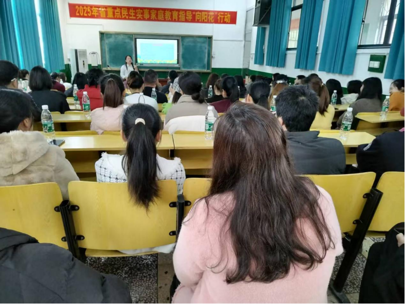 为提升家庭教育质量,关爱留守儿童身心发展,3月14日下午,桃花江镇城北中学联合桃花江小学共同举办了一场主题为“家校携手 共育未来”的家长会。该校地处县城郊区,学生中留守儿童和离异家庭子女较多,针对这一特殊群体需求,活动特邀桃花江小学业务副校长张凤梅作专题分享,开展2025年省重点民生实事家庭教育指导“向阳花”行动,近百名家长到场参与。