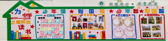 各年级文化栏犹如打开的素质教育立体书:一年级文化栏中优秀板块有榜样力量、个性橱窗、活动风采;二年级文化栏中优秀板块有班级风采、学习园地、作品展示;三年级文化栏中优秀板块有成长足迹、荷韵纷呈、家校桥梁;四年级文化栏中优秀板块有墨海泛舟、星芒领航、百舸竞秀;五年级文化栏中优秀板块有妙笔生花、闪光之星、精彩瞬间;六年级文化栏中优秀板块有心情驿站、书墨相伴、阅读天地。从心灵港湾到成长天地,每一面墙都成了会讲故事的育人空间。