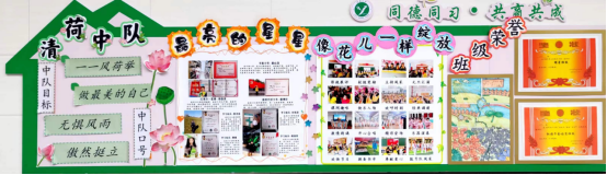 漫步教学楼长廊,仿佛踏入优秀中队教育馆:“一一风荷举,做最美的自己”2001清荷中队;“点点滴滴学做人,时时刻刻取进步”2002逐梦中队;“乘风破浪,扶摇直上”2003追光中队;“迎着阳光,尽情绽放”2006向日葵中队;“荷韵纷呈,荷风送彩”2202荷露中队;“青竹凌云志,齐心共成长”2203青竹中队;“追光而遇,沐光而行”2307星海中队等。