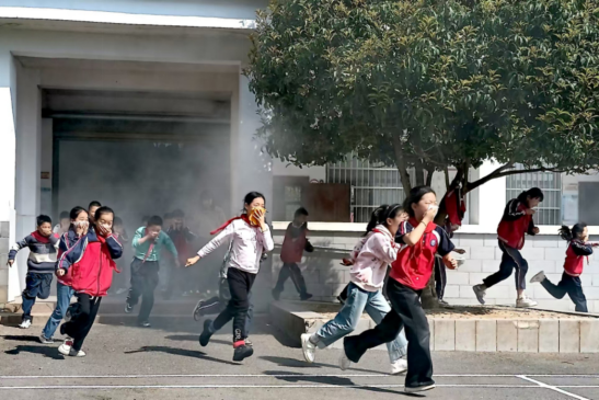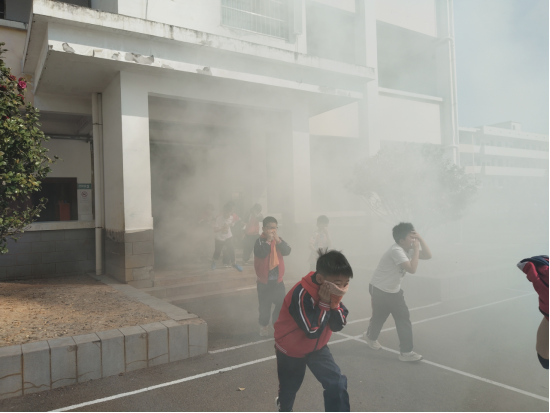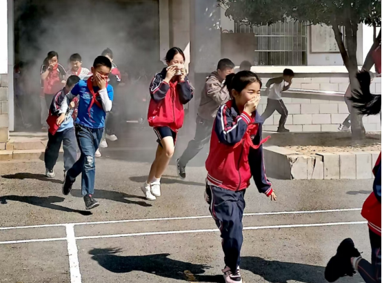 “着火啦!我们快跑……”随着警报声响起,消防演习烟雾罐浓烟飘起,演练正式开始,各班学生在老师的带领下按指定的疏散路线,用湿毛巾捂住口鼻,弯腰低姿,快速有序地向操场撤离。在疏散过程中,各楼层负责老师坚守岗位,认真指挥。到达操场后,老师们立即清点人数,并向现场指挥老师报告。整个疏散过程紧张有序,仅用时3分钟,全校师生全部安全疏散到指定地点。学校相关负责人给师生们讲解了消防应急器材的使用方法及注意事项,并现场指导学生们进行动手实操。