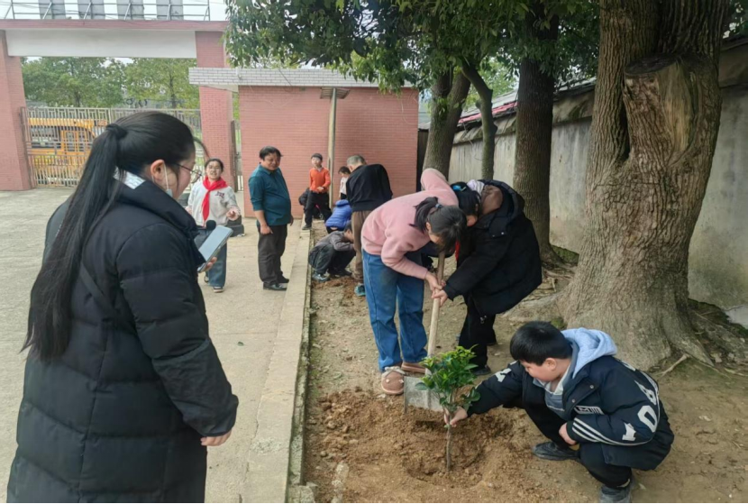 亲子植树活动则是回家后的绿色接力。学校倡议家长们带孩子在自家房前屋后或田间地头种下希望的树苗,对于留守儿童,学校特别安排了教师志愿者帮助他们完成植树任务。许多留守儿童在老师的陪伴下种下了属于自己的小树,并在树旁留下心愿卡,写下对父母的思念和对未来的憧憬。此次活动不仅让校园更加绿意盎然,更让师生和家长深刻体会到植树的意义,让绿色理念扎根于每个人心中。